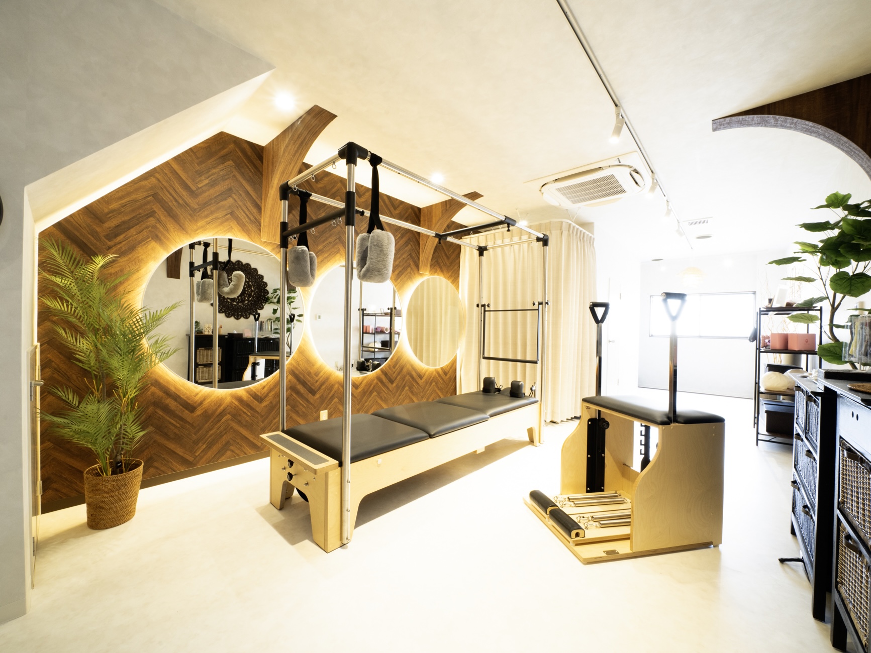 女性専用・完全個室の空間で、経験豊富なインストラクターがマンツーマン指導いたします。姿勢や体調の悩みに合わせてピラティスマシンを用いたオーダーメイドレッスンを行い、「いつまでも美しく・健康で人生を楽しむ “輝く女性” を増やす」というブランドミッションを実現します。